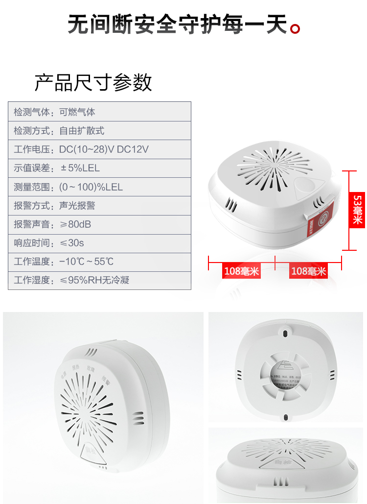报警声音 | ≥80dB | 响应时间 | ≤30s |